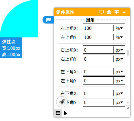 圆角用于设置块的四个角的圆弧程度。分别有左上角、左下角、右上角、右下角。四个角又分成X和Y,通过设置它们,可以得到想要的圆弧程度。
