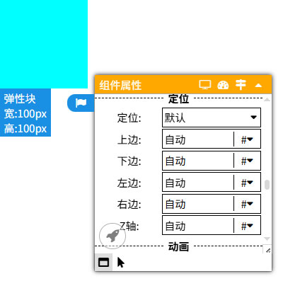 定位用于设置块如何定位。分为默认、绝对、相对、固定和粘黏。