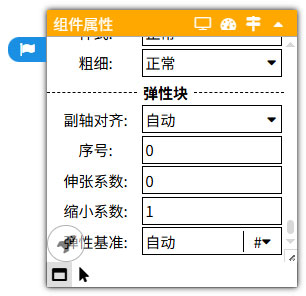 弹性块的特有属性主要有:副轴对齐、序号、伸张系数、缩小系数、弹性基准。