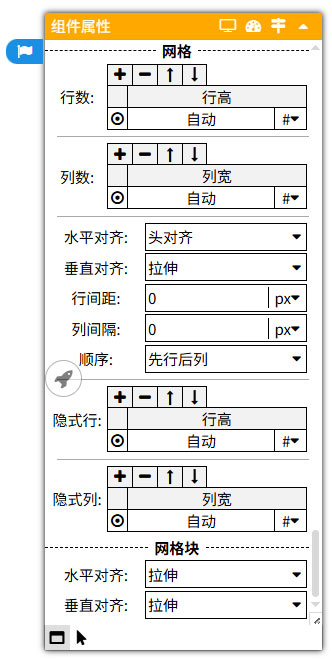 网格容器也能设置其内网格块的水平对齐、垂直对齐。但这是面向其内所有网格块的,优先级低于网格块的同属性设置。