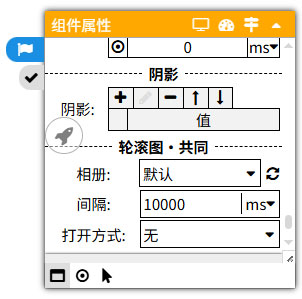 轮滚图特有属性:相册、间隔、打开方式。