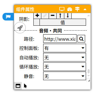 音频块特有属性:路径、控制面板、自动播放、循环播放、静音。