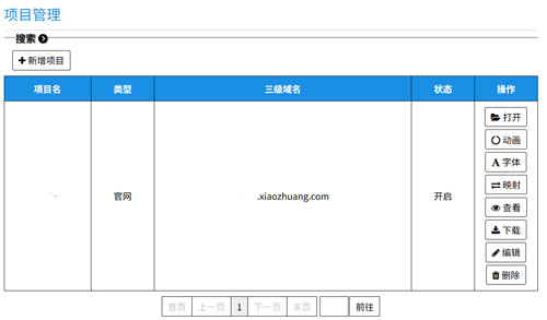 项目管理是用于创建项目(目前只能官网)、查看项目、编辑项目、创建页面、编辑页面等的。