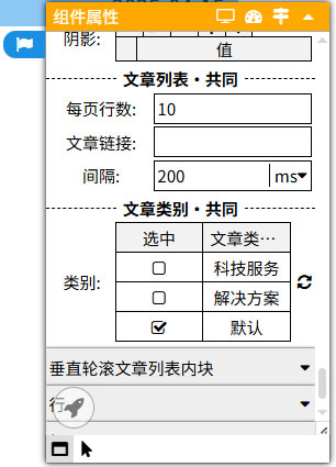 垂直滚动文章列表块的特有属性:行数、文章链接、间隔、类别。
